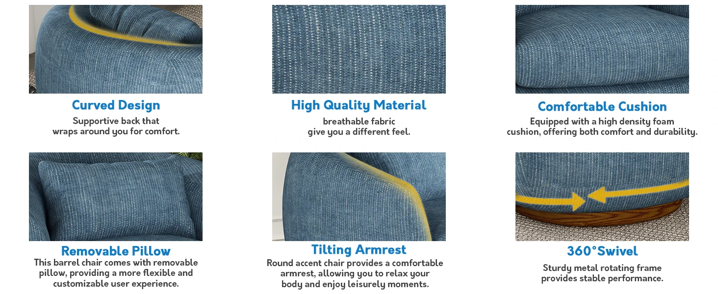 The ASAL Swivel Accent Chair Armchair is the perfect blend of modern design, comfort, and functionality, making it an excellent addition to any home or office space.
