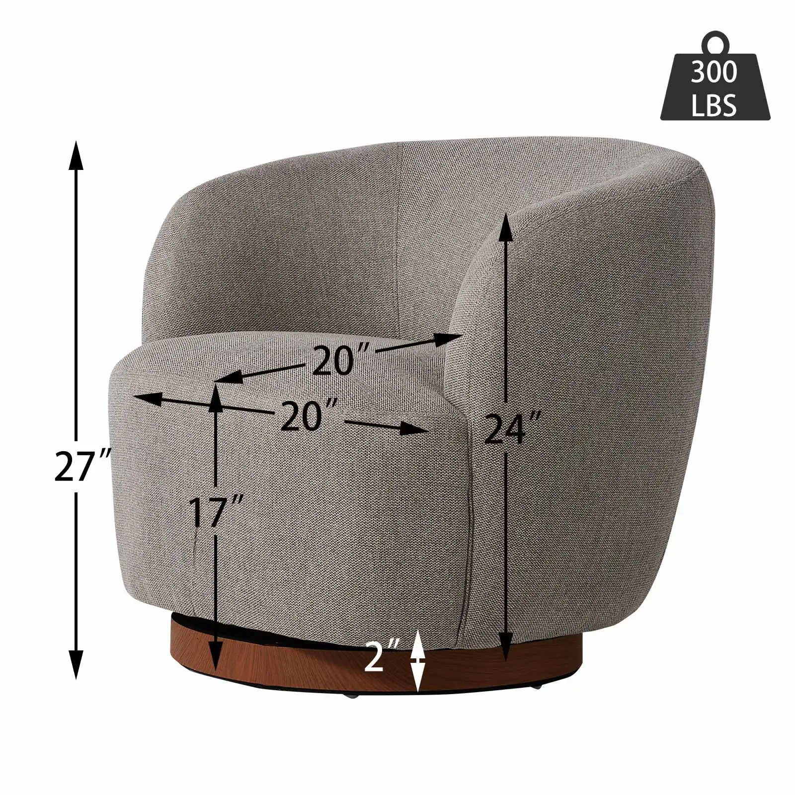 EXACT SPECIFICATIONS: Overall Dimensions: 28.74 "W * 28.74" D * 27.2 "H, Seat Depth 19.7": Seat Width Min 20.07 "-Max: 26.77", Living Room Chair Loads up to 300 lbs for great support.