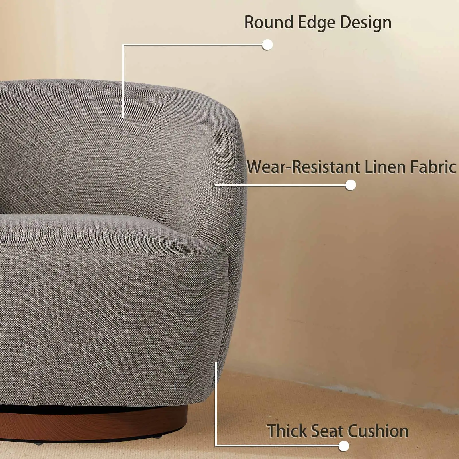 NOON Swivel Accent Chair Armchair with Curved Back Linen Fabric